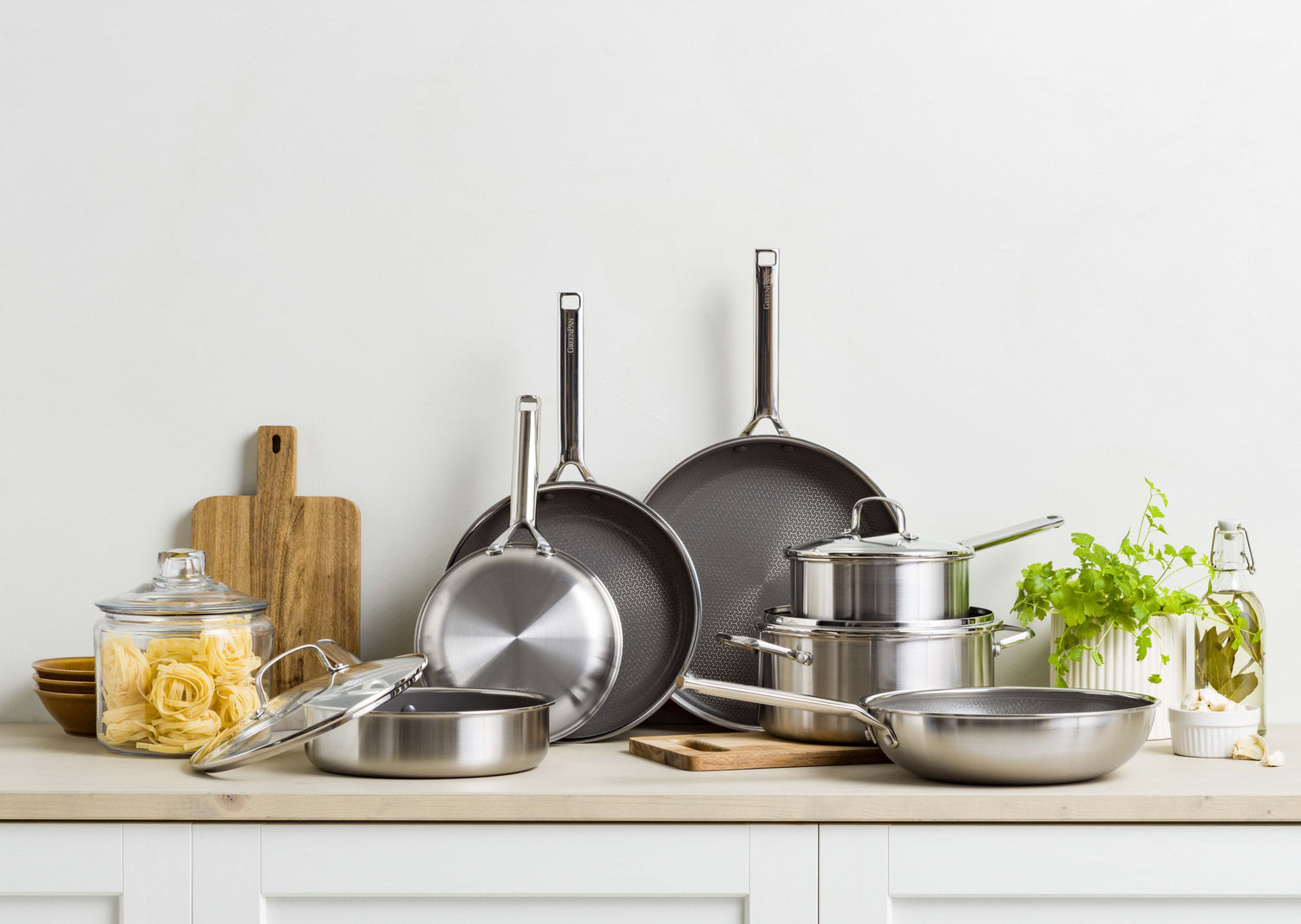Essence 具有簡約的外觀和充滿活力的大地色,擁抱自然美學。這些平底鍋塗有我們標誌性的不含 PFAS 的陶瓷不沾鍋,由回收鋁製成。此外,可拆卸的人體工學手柄可保持涼爽並輕鬆回收。