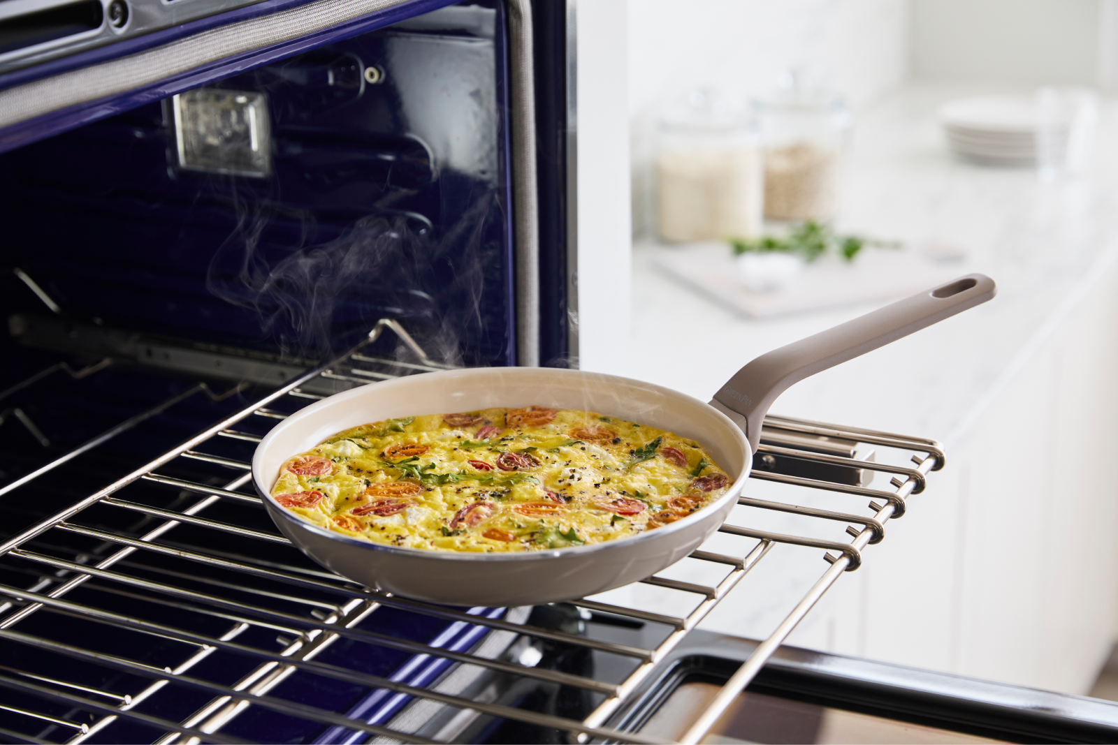 The absence of forever chemicals in our pans means they won't release toxic fumes, even if you accidentally overheat your pan. Thermolon™ can withstand temperatures up to 850°F/450°C, something that would not be safe to do with a traditional nonstick frypan. Thermolon™ has been certified by third party testing labs as conforming to international regular food contact standards set by the USFDA (USA Food & Drug Administration) and the German LFGB. Plus, the coating has been certified by the Swiss government and KTR (authoritative test institute certified by Korea Laboratory Accreditation) as conforming to their standards. We are proud to say that GreenPan was the first ceramic nonstick frypan on the market ever. As the innovators, we continue to create dynamic cookware for our consumers all over the world.