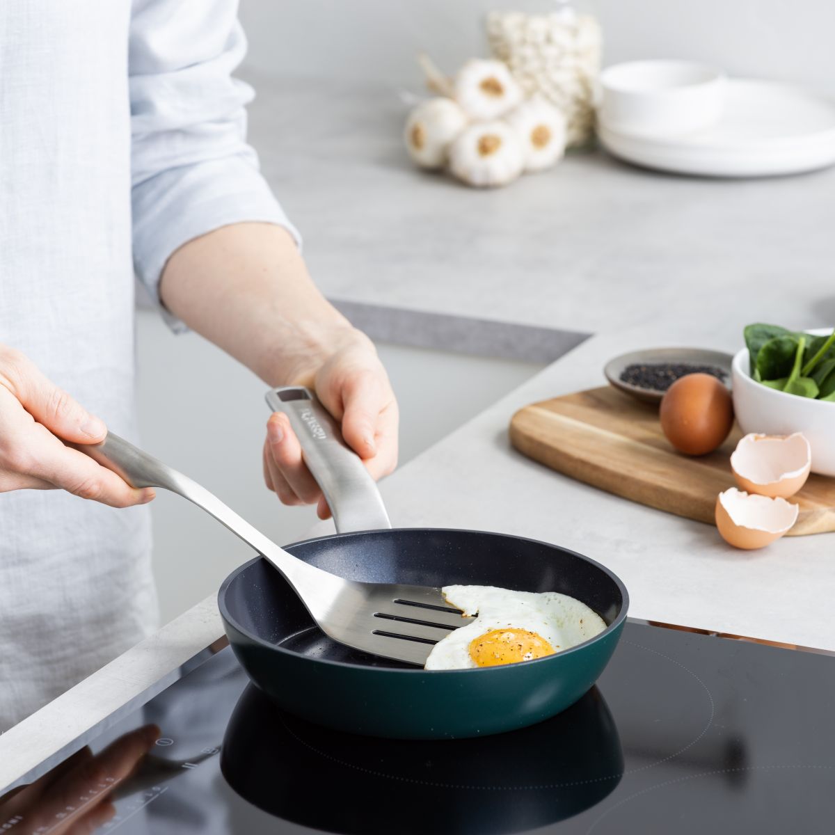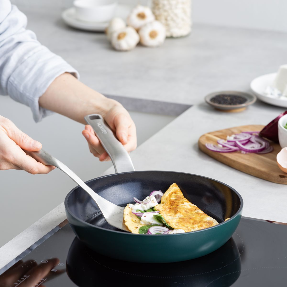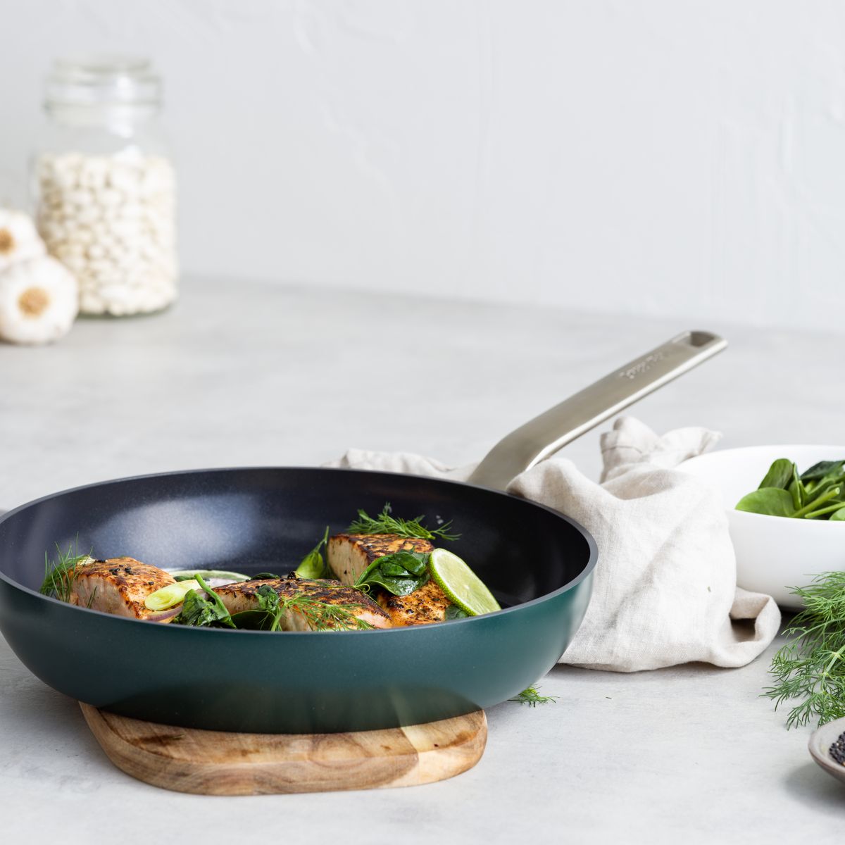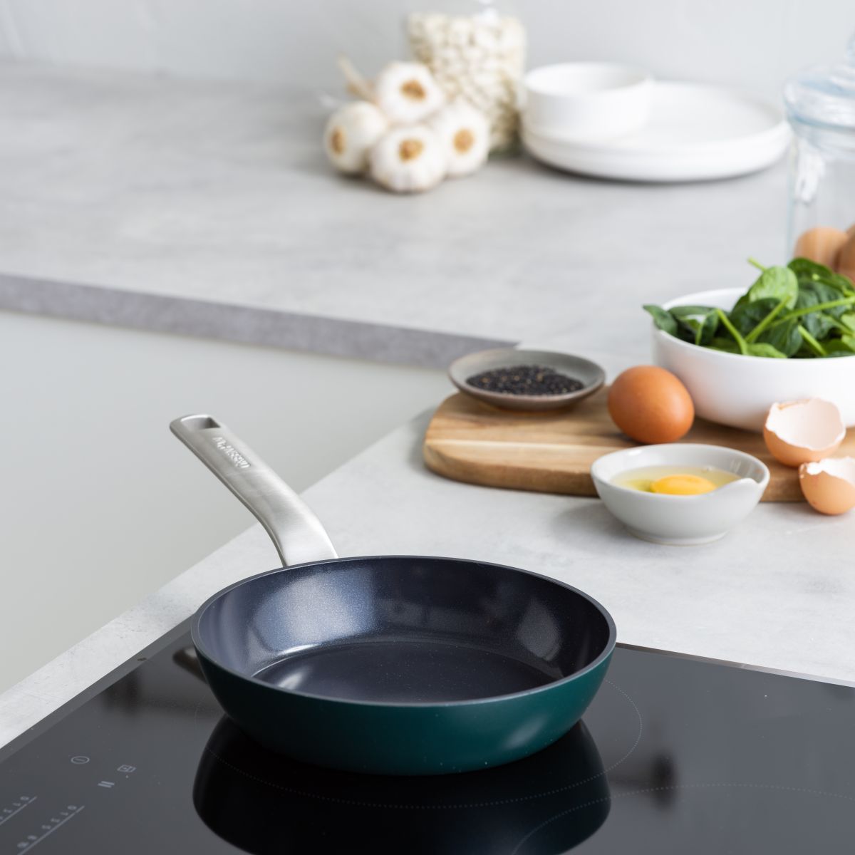 GreenPan Evolution 系列專為追求卓越品質與時尚美學的廚房設計。採用領先的 Thermolon™ 陶瓷不沾塗層並增強鑽石成分,具備極致的耐磨性與導熱效率。獨家 Balance Pro 技術確保鍋底受熱時保持平整,讓食油分佈均勻,完美應對每一道料理,是現代健康烹飪的首選。