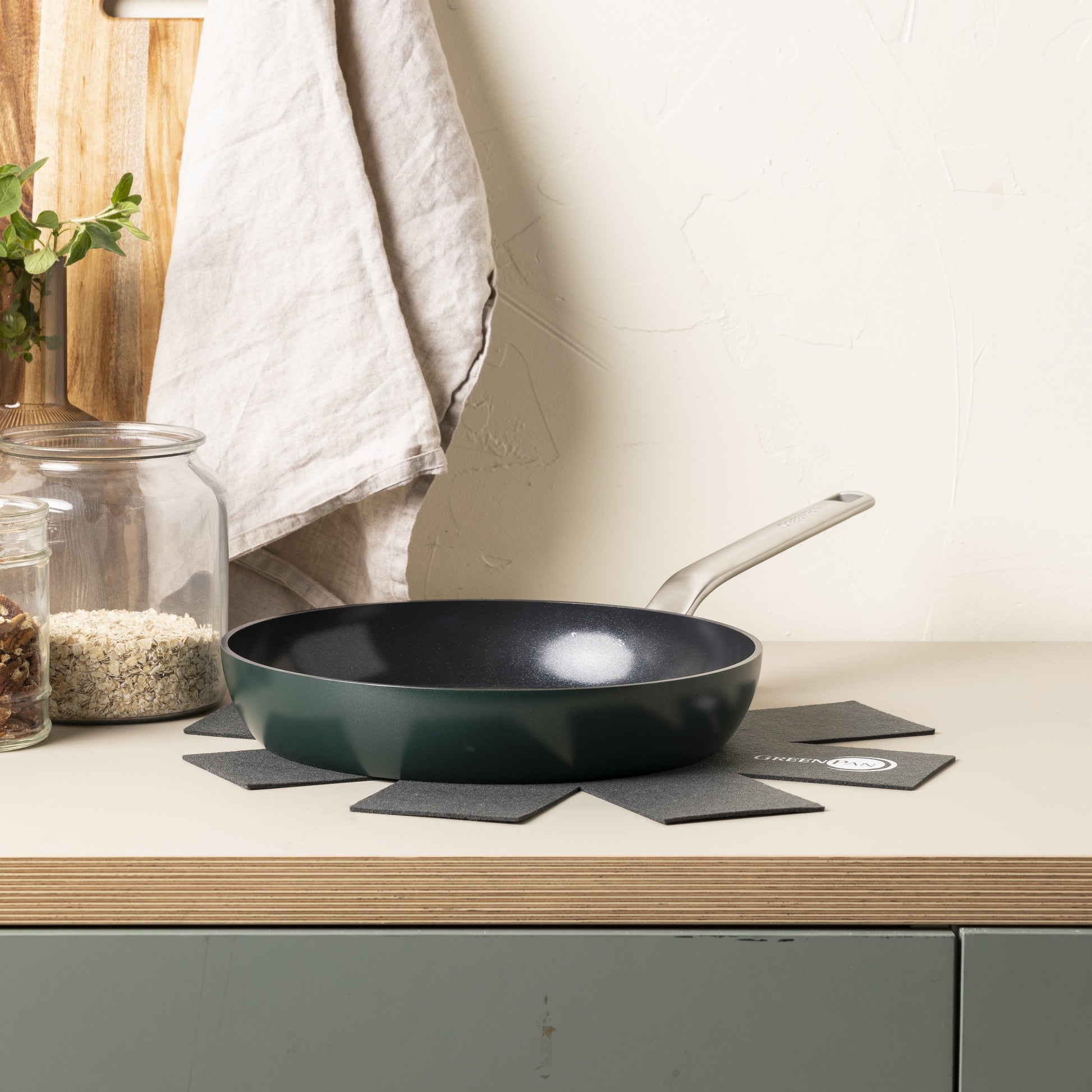 - ✔ 環保材質:鍋身採用 25% 回收鋁製成,並附送保護墊,方便層疊存放避免刮花